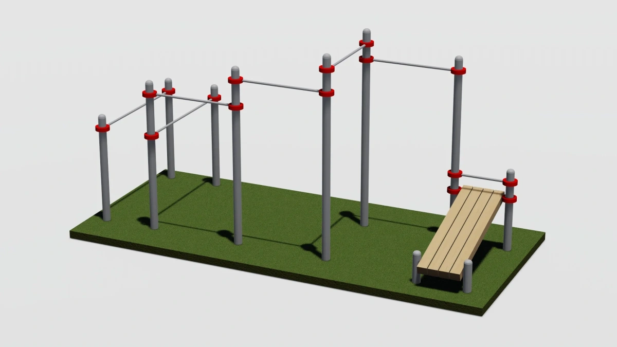 Четыре турника, брусья и скамья для пресса