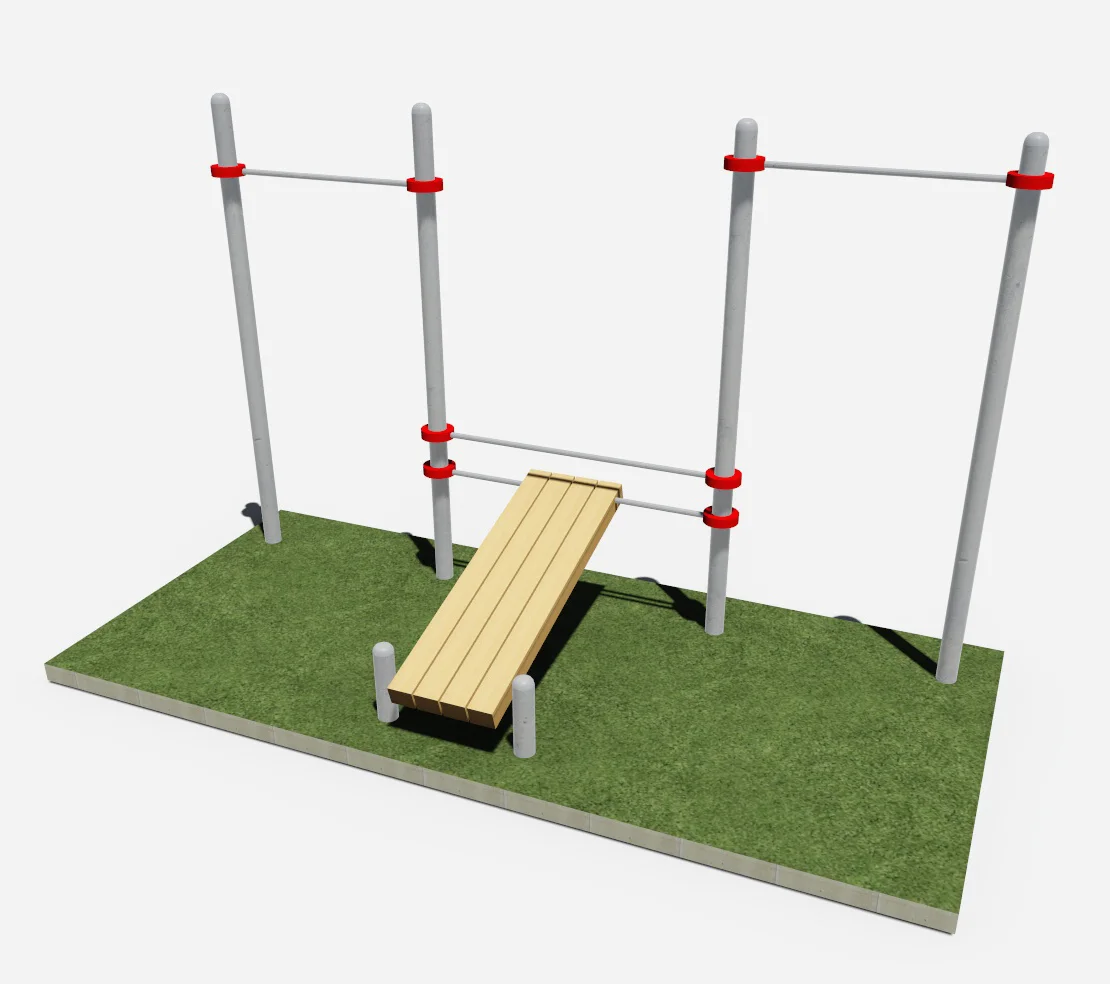 Составляющими данного комплекса являются скамья для пресса и два турника.